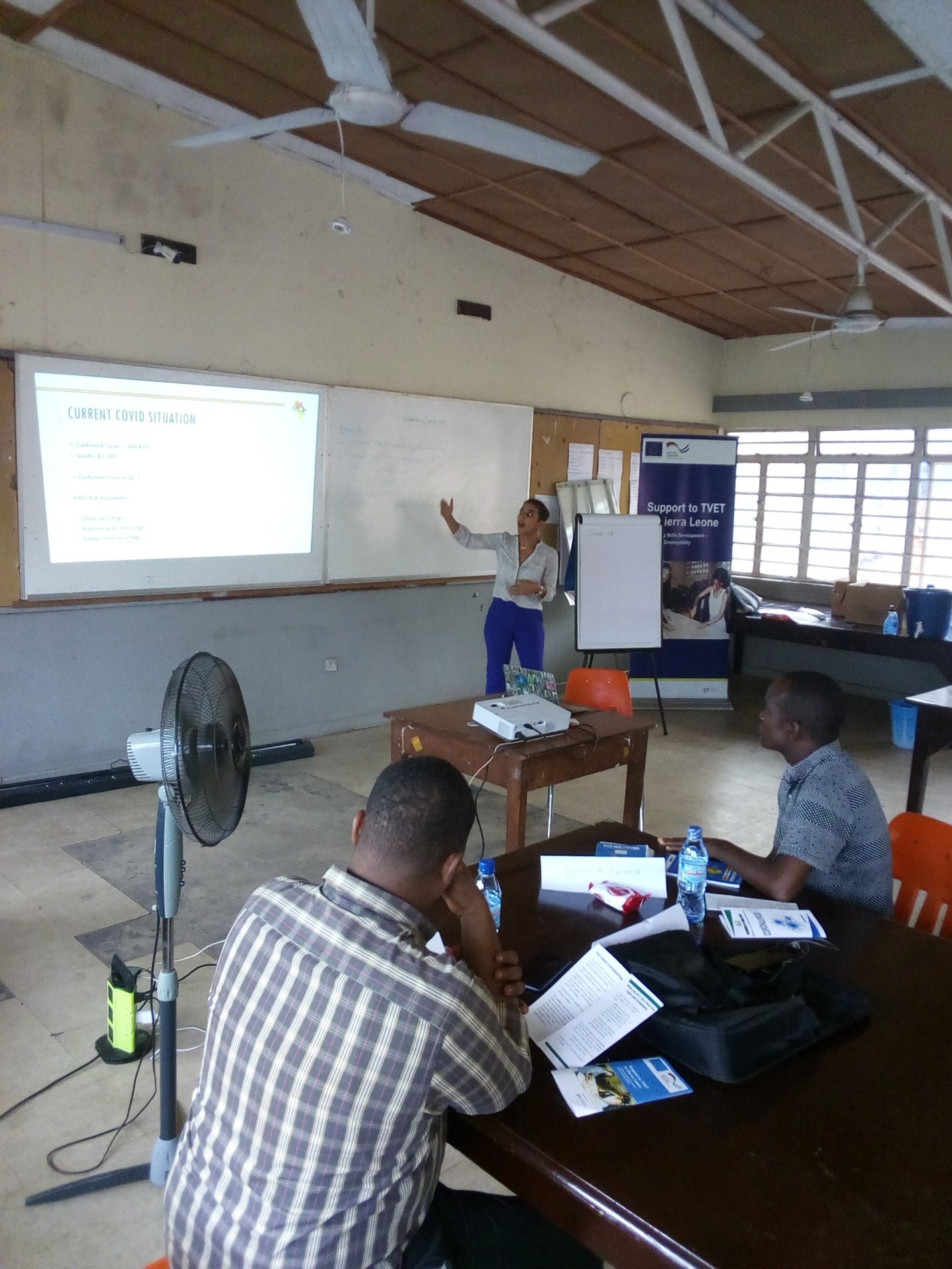 Forty-five (45) staff of the National Council for Technical Vocational and other Academic Awards (NCTVA) on Thursday 9th April 2020 received training, with support from the European Union (EU), from the German Agency for Technical Cooperation (GIZ, the implementing partner). The training was based on the preventive measures of the global corona virus pandemic or COVID-19 and took place at the NCTVA headquarters on A. J. Momoh Street, Tower Hill in Freetown.