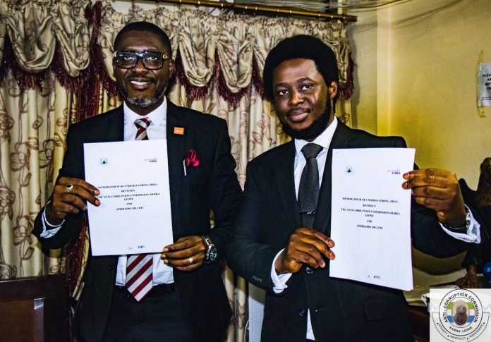 The signing ceremony which took place at the ACC Head Office at 3 Gloucester Street, Freetown, will, among other things, formalize the agreement between the two institutions to work in partnership to provide reliable and relevant information on corrupt practices and other corruption-related issues in Sierra Leone.