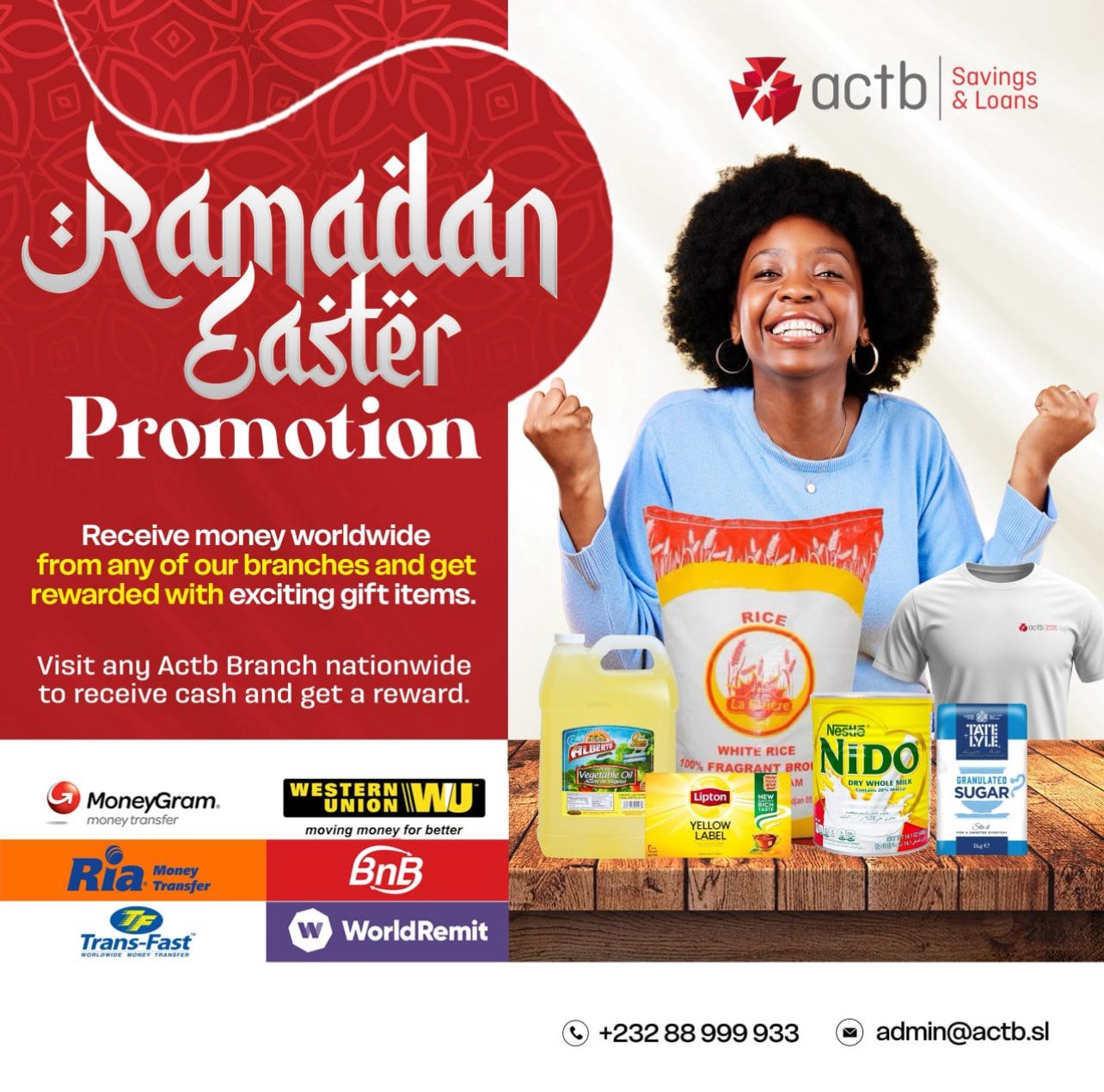 A Call To Business Bank (ACTB Bank) has unveiled its Ramadan–Easter Promotion, a nationwide campaign designed to reward customers who receive international money transfers through its branches across Sierra Leone.