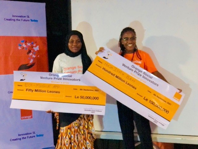 In a bid to provide a platform for young innovators and creative thinkers in the country, one of the leading GSM mobile operators in the country, Orange Sierra Leone, has on Wednesday 8th September, 2021 awarded Haja Isatu Bah of “Uman4Uman” winner of this year’s Orange-SL Social Venture Prize Innovators competition and Adama Kadijah Thoronka of Eco Mobile Clinic who was also awarded winner of International Women’s Award 2021. The event was held at their Headquarters on Hill Station in Freetown.