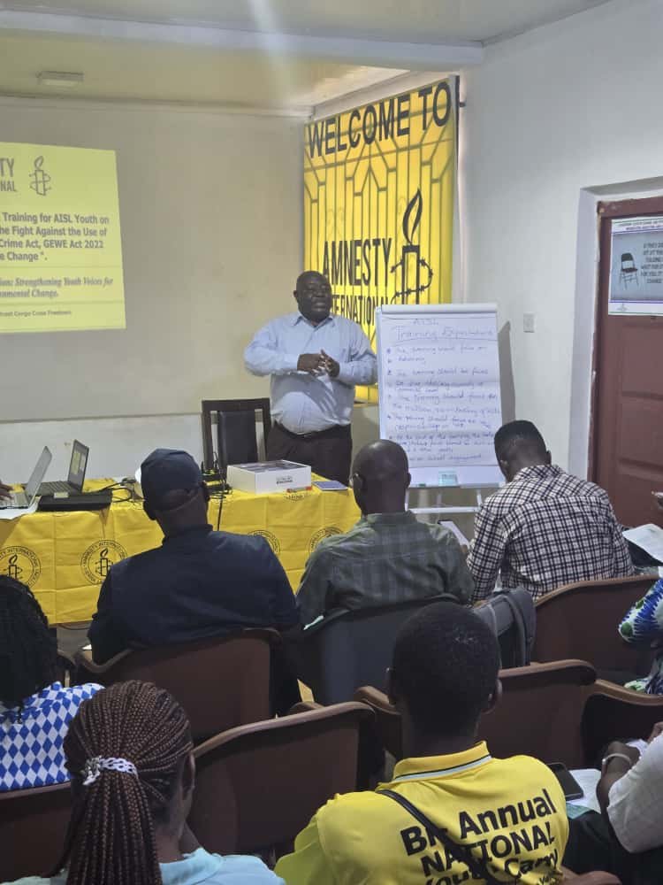 Amnesty International Sierra Leone (AISL) has launched a two-day youth empowerment and capacity-building training aimed at enhancing the advocacy and leadership skills of young people across the country. The training, which began on Thursday, November 13, 2025, at the AISL National Secretariat in Freetown, is being held under the theme: “From Knowledge to Action: Strengthening Youth Voices for Social and Environmental Change.”