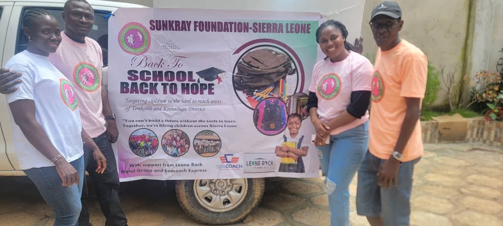Chief Executive Officer of Sunkray Foundation Sierra Leone, Madam Isatu Sunkarie Mansaray, expressed appreciation for the continued growth of the Foundation’s work. She thanked God for His guidance and extended special acknowledgment to the sponsors of this year’s “Back to School, Back to Hope” project, Leone Rock Metal Group and SeaCoach Express, for their generosity and commitment to education.