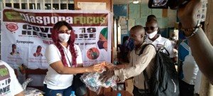 Within the context of complementing the efforts of the Government to reach out to communities with preventive messages, one of Sierra Leone’s most proactive organizations, Diaspora Focus, on Saturday 4th July 2020, embarked on a sensitization drive to raise awareness about the mode of transmission and prevention of the Coronavirus Disease (COVID-19) at Malama, Kamayama, Mayimbo, Sheriff Drive, Upper Regent Road-Lumley, Pentagon Communities etc. in the Western Area Urban District. The organization also donated Personal Protective Equipment worth millions of Leones, viz: 25 Veronica buckets, 25 waste buckets, 3 cartons of soaps and 1,500 facemasks to residents of those communities.