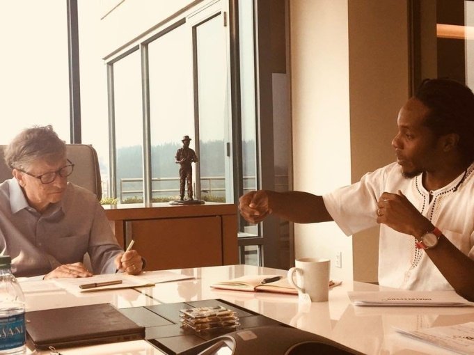 Bill Gates said he met David Moinina Sengeh, when he was a college senior studying biomedical engineering. He narrated how the University President asked him to introduce David at a lecture he, Bill, was giving, and he charmed the crowd by talking about the ways they are both similar (we both want people to live healthy, fulfilling lives) and how they are different (in their hairstyles).