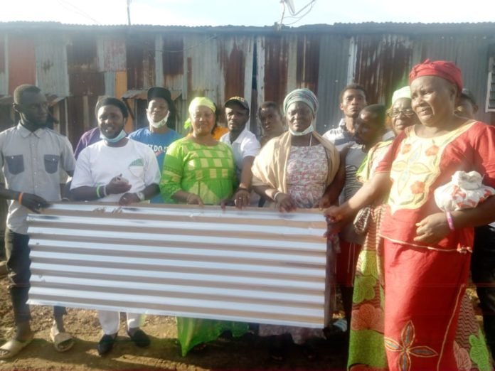 In order to give solace to those who had their houses gutted down during the Genet Lane fire disaster, the Executive members of Constituency 125 representing the Sierra Leone People’s Party (SLPP) on Friday donated nine bundles of roofing zinc to the Kingtom Descendants Association for onward support to the ongoing reconstruction effort of shelters destroyed during the August unfortunate incident.