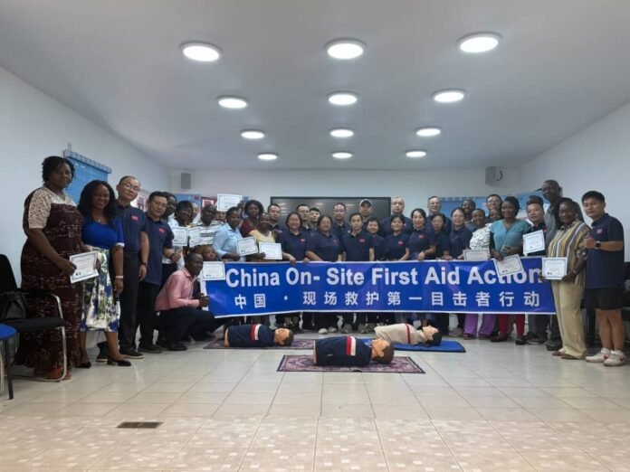 The 26th Batch Chinese Medical Team successfully conducted an on-site First Aid Training Programme for staff of UNICEF Sierra Leone at the UNICEF Head Office in Freetown on Monday. This vital two-day training aims to equip participants with essential first aid skills, including Cardiopulmonary Resuscitation (CPR), trauma first aid and emergency response techniques, thereby enhancing their preparedness for medical emergencies.