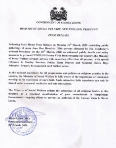 Christians, Muslims and other religious denominations have viewed with a dim light the declaration by the Ministry of Social Welfare that Churches, Mosques and others that worship in congregations must henceforth suspend all services.