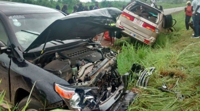 On Thursday evening, another gruesome accident involving two Mercedes Benz Sprinter poda-podas and a taxi that was crushed like a tin took place close to the Orugu Bridge coming from the Allen Town end.