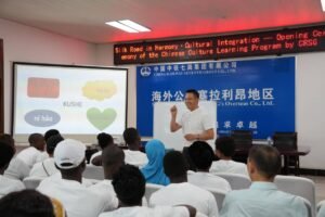 On September 13, 2025, CRSG officially launched the “Silk Road in Harmony: Cultural Integration” program in Freetown. That significant initiative aimed to cultivate cultural understanding and enhance language skills among Sierra Leonean students, particularly from the Polytechnic, alongside CRSG Management staff. By offering a series of educational sessions focused on the Chinese language and culture, the program provides invaluable resources for students to build language proficiency and gain insights into Chinese customs and practices. That initiative not only facilitates smoother communication but also strengthens ties between the local community and the Chinese expatriate workforce, fostering mutual respect and collaboration.