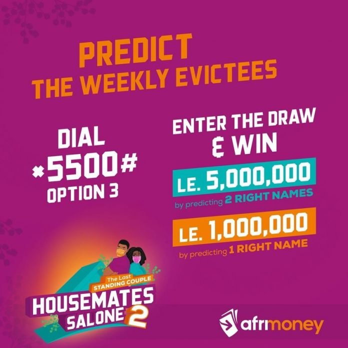 For now there is a new promotion that the organizers have put in place for viewers to win different prizes by predicting the evictees on a weekly basis. The promotion goes like this: Dial*5500# and choose Option 3 to enter the draw and win Le5,000,000 by predicting two right names and Le1,000,000 by predicting one right name.