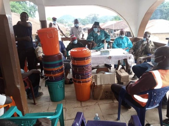 The Regent Paramount Chief of Kamasondo Chiefdom, Pa Komrabai Lawyer Kabia, thanked the company very well for such a support and said that they have instituted the mandatory use of facemasks in public meetings and gatherings. He said they have also erected and re-enforced the checkpoint at the entrance of Pepel Town saying they are thanking the company for the support given to them by providing them with tarpaulin to build the hut.