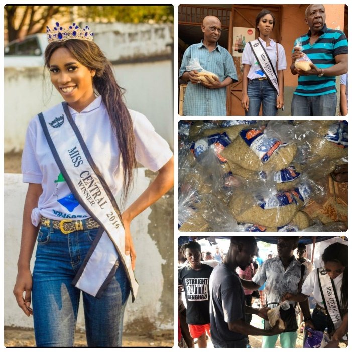 To access communities with the objective of spreading preventive messages against the coronavirus, one of Sierra Leone’s most outstanding beauty contestants who also doubles as the winner of Miss Central 2019/2020, Evelyn Isatu John, has embarked on community awareness raising campaign using messages against the coronavirus and also distributed food items to the aged at Sackville Street & Brookfields respectively.