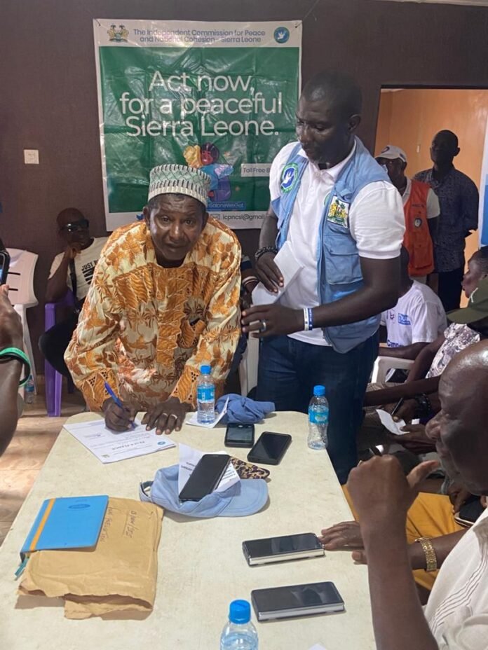 Marking a historic step toward promoting peaceful elections and social stability, the Independent Commission for Peace and National Cohesion (ICPNC) on Thursday, November 6, 2025, facilitated the signing of a Peace Pledge by all chieftaincy candidates in Bakeh Loko Chiefdom, Port Loko District.
