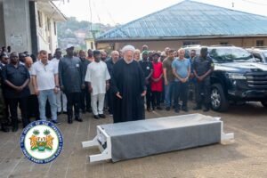 During the solemn ceremony, President Bio paid tribute to the late Talal Saleh Fawaz for his steadfast loyalty and visible contributions during the 2023 presidential campaign. The President recalled Talal Saleh Fawaz as a committed supporter of the Paopa movement who actively participated in campaign activities across several districts and chiefdoms, offering both moral and practical support throughout the period.