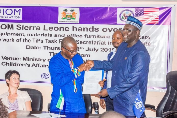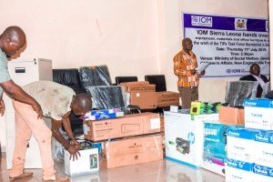 Last week, the International Organization for Migration (IOM), in collaboration with the Ministry of Social Welfare, Gender and Children’s Affairs (MSWGCA) in Sierra Leone, held a handing over ceremony of equipment to the Sierra Leone Trafficking in Persons (TIPs) Task Force Secretariat at the MSWGCA.