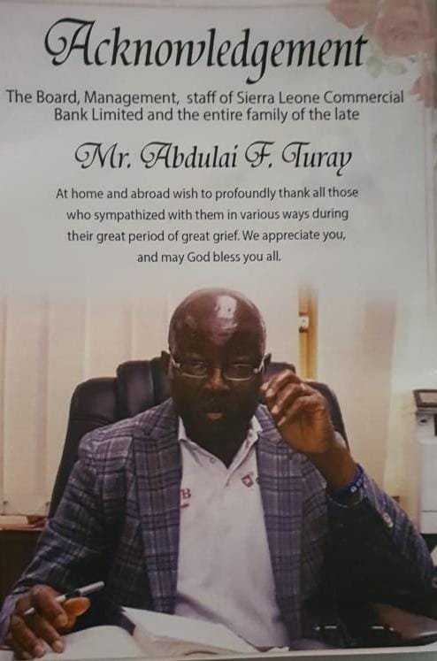 The Sierra Leone Commercial Bank Limited opened a book of condolence for the late Managing Director, Abdulai Fidelis Turay on the 23rd August at its Headquarters in Freetown.
