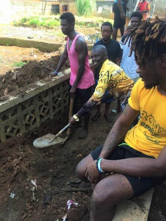 Lamin A. Kamara aka Sir J., one of Sierra Leone’s finest young philanthropic has continued his developmental oriented drive by supporting cleaning exercises in Dong Hole community.