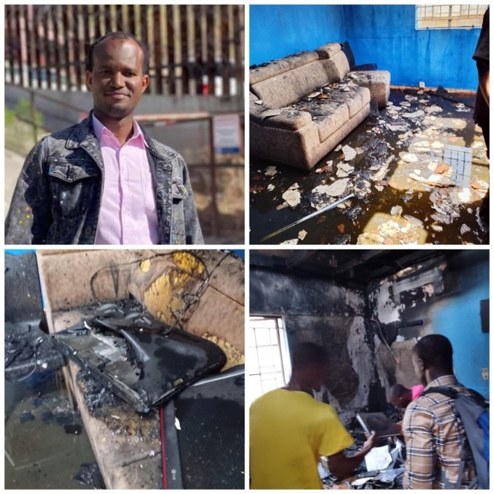 Mohamed Asmieu Bah disclosed that the blaze destroyed his laptop, phone, bag, furniture, office fittings and critical work materials, leaving him without a functional workspace.
