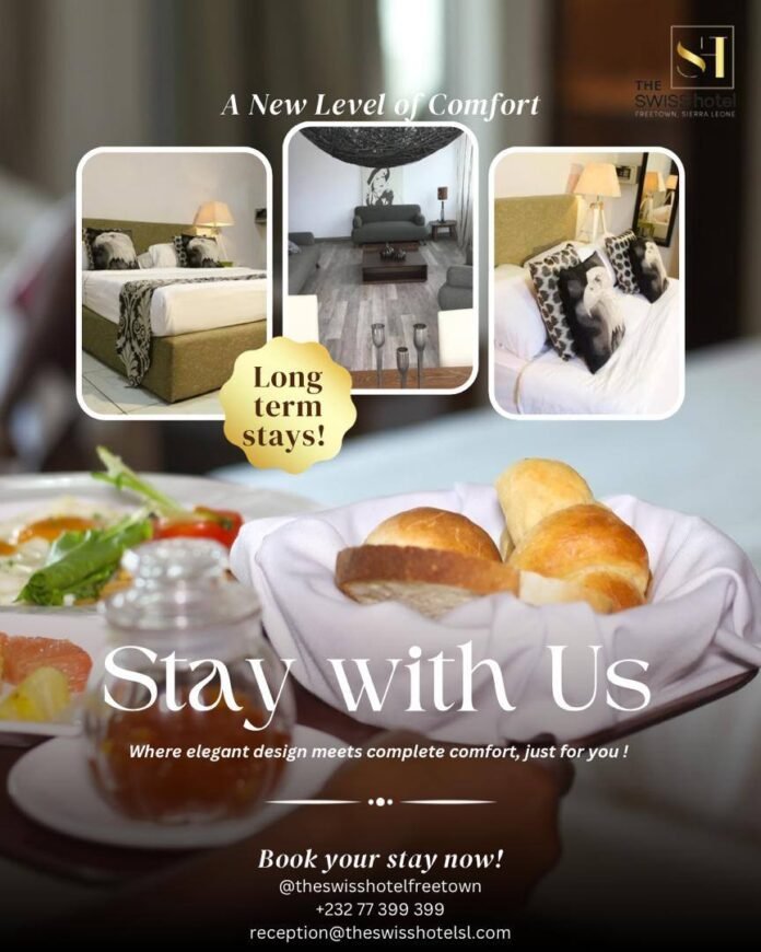 “We’re redefining what it means to experience hospitality in Freetown,” said a spokesperson for Swiss Hotel. “Whether you’re here for months or just a moment, you’ll find world-class comfort, cuisine, and care at every turn.”